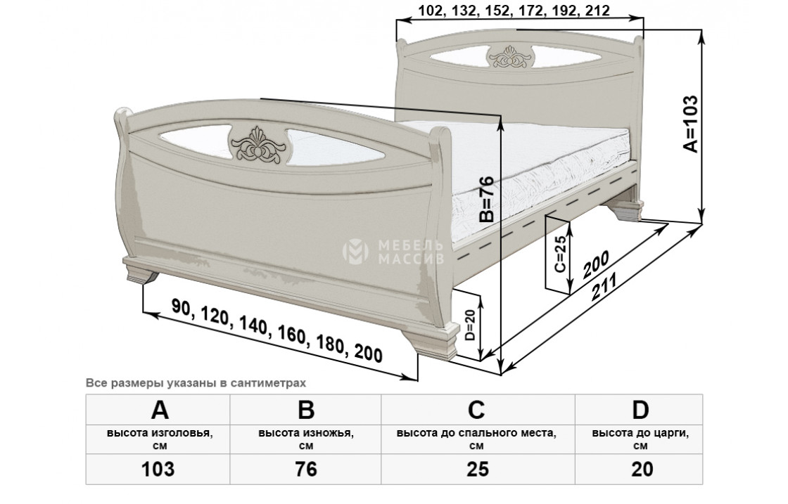 Кровать Эльза имеет две идентичные спинки, отличающиеся аккуратной изогнутостью, декоративными углублениями и цветочными узорами. Изделие, которое можно купить по специальной цене в нашем интернет-магазине, оснащено устойчивыми ножками, защищающими напольное покрытие от повреждений. Осуществляется доставка на дом по Красногорску и Московской области .| Размер | Цена | |