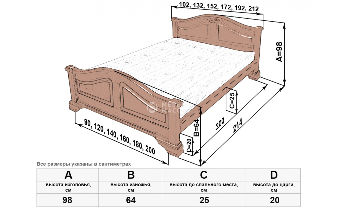 Королевская кровать Европа мод 1 изготовлена из натурального древесного массива. Модель имеет прочную конструкцию и благородный вид. Изделие, которое можно купить по выгодной цене в нашем интернет-магазине, отличается сплошными симметричными волнообразными спинками, переходящими в устойчивые ножки. Осуществляется доставка на дом по Красногорску и Московской области .| Размер | Цена | |